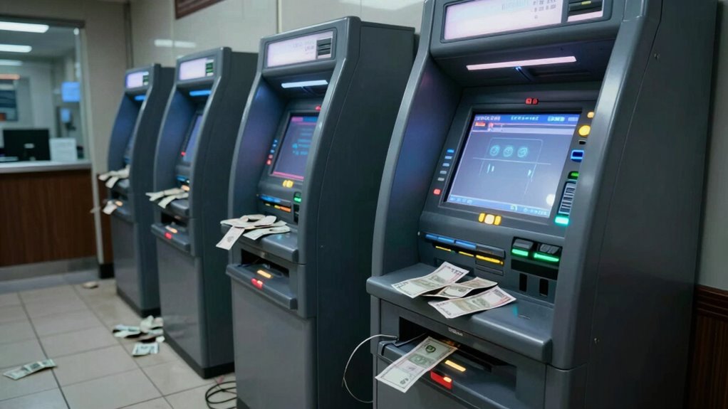 You’re likely to see ATMs targeted frequently, especially in regions with high criminal activity. Criminal gangs coordinate multiple attacks, often hitting several machines in a short period. These attacks can happen weekly or even daily, depending on security measures. With the rise of sophisticated malware and physical breach techniques, the risk remains high, so you should stay vigilant and guarantee your bank’s security protocols are robust to prevent these lucrative thefts.