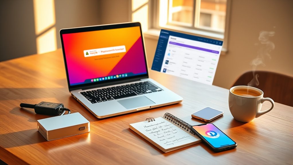 To protect your accounts, prioritize password management. Create strong passwords by mixing upper and lower case letters, numbers, and special characters—avoid personal information. Use a password manager to generate and securely store unique passwords for each account. Enable multi-factor authentication for an extra layer of security, and stay vigilant against phishing attempts. Regularly update your passwords to keep them secure. Keep these tips in mind, and there’s more valuable information ahead.