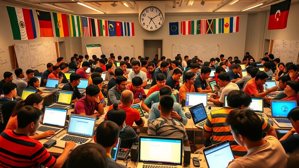 Global hackathons are exciting events where innovators from around the world team up to solve real-world problems. You’ll find diverse talents collaborating for about 48 hours, racing to develop prototypes and innovative solutions. Some notable events include HackZurich in Switzerland, TechCrunch Disrupt in the US, and the Global Hackathon hosted by Major League Hacking. These gatherings are a melting pot of creativity and technology, and there’s so much more to explore about their impact.