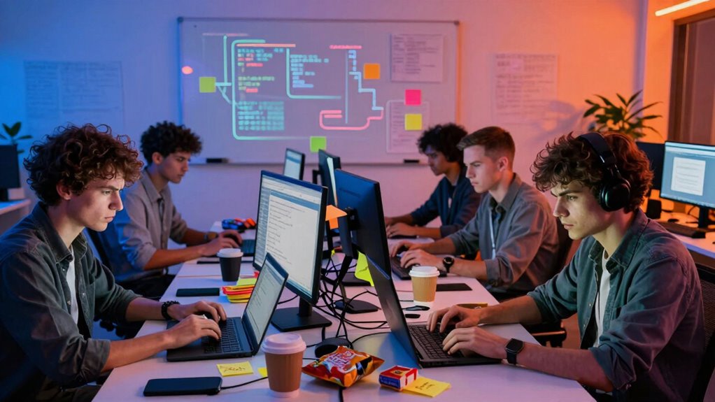 Hackathons are addictive because they create a fast-paced, energetic environment that fuels your creativity and problem-solving skills. The thrill of rapidly turning ideas into prototypes, plus instant feedback, keeps you motivated. The competitive spirit pushes you to perform at your best and learn new skills. You also get to network with like-minded people, gain recognition, and build your portfolio. If you want to discover more about what makes hackathons so engrossing, keep exploring.