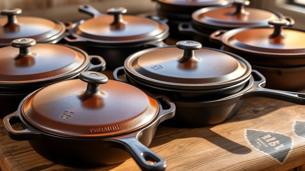 Choosing the right cast-iron skillet with a lid is like finding a trusty old friend—reliable, versatile, and always there when you need it. I once underestimated mine, only to realize it transformed my cooking game entirely. Remember, a good skillet isn’t just a tool; it’s an investment in countless delicious meals ahead. So, pick one that feels right—because the right skillet turns everyday cooking into a cherished tradition.