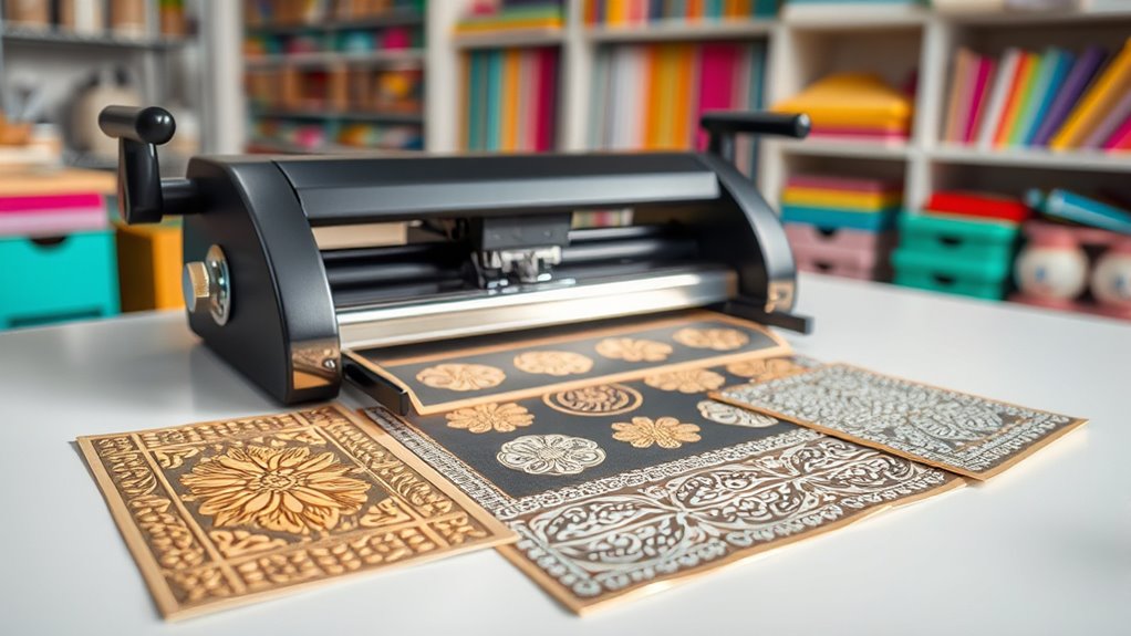 Looking for the best embossing machines of 2025 to create stunning textured designs? I’ve compiled a list of top manual and electronic models, including versatile open-platform machines, compact foldable options, and complete kits for beginners and experts alike. Whether you want to emboss paper, fabric, or leather, these machines offer durability and precise results. Keep exploring, and you’ll discover detailed features, user tips, and what makes each of these options stand out.