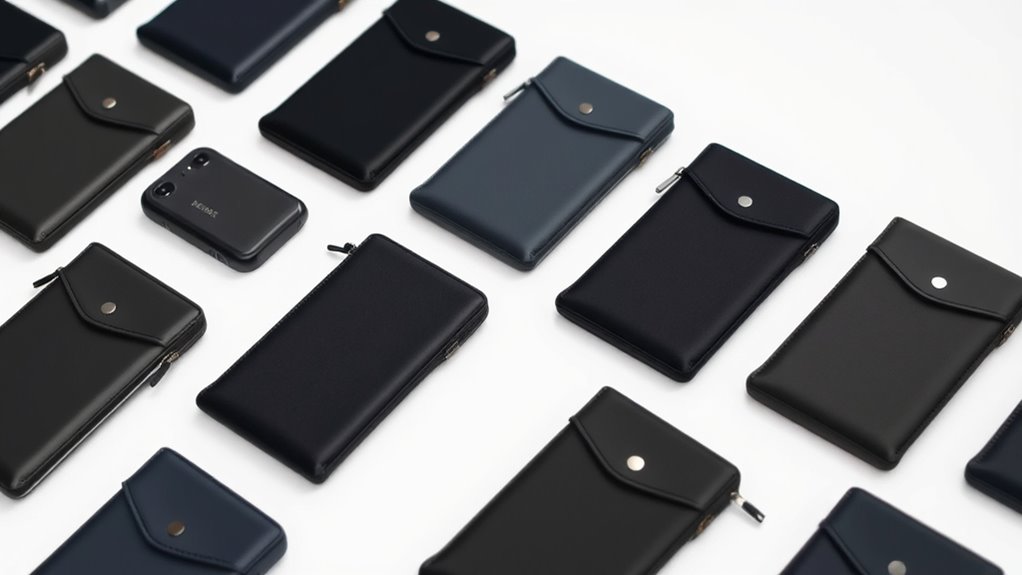 Are you making the most of your EMF shielding phone pouch’s features? It’s worth considering extra functionalities that boost convenience and protection. Some pouches come with RFID-blocking slots or cash pockets, giving you a simple way to combine shielding with wallet features. Drawstring closures or magnetic seals help guarantee a secure fit, preventing signal leaks and accidental drops. Integrated straps or key rings make it easy to attach your pouch to bags or keys, adding portability to your daily routine. Extra compartments for credit cards, IDs, or cash can turn your pouch into a handy mini-wallet. Additionally, features like transparent windows or easy-access openings allow quick device use without sacrificing shielding effectiveness. These added features can considerably enhance your overall experience.
