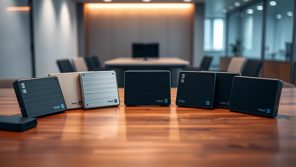 When selecting a FIPS-validated external SSD, durability and build quality are crucial considerations, especially for demanding environments. These drives are crafted with rugged, impact-resistant enclosures that can withstand shocks and drops, thanks to shock-proof and drop-proof designs. They typically use tough materials like aluminum or reinforced plastics, which bolster structural integrity and safeguard internal components. Many models are engineered to endure environmental stresses such as dust, water, and temperature fluctuations, ensuring reliable performance in harsh conditions. Their sealed or semi-sealed cases prevent dust and moisture ingress, maintaining data integrity. This focus on robustness and longevity makes these SSDs ideal for military, government, and security-sensitive applications where durability isn’t just a feature—it’s essential.