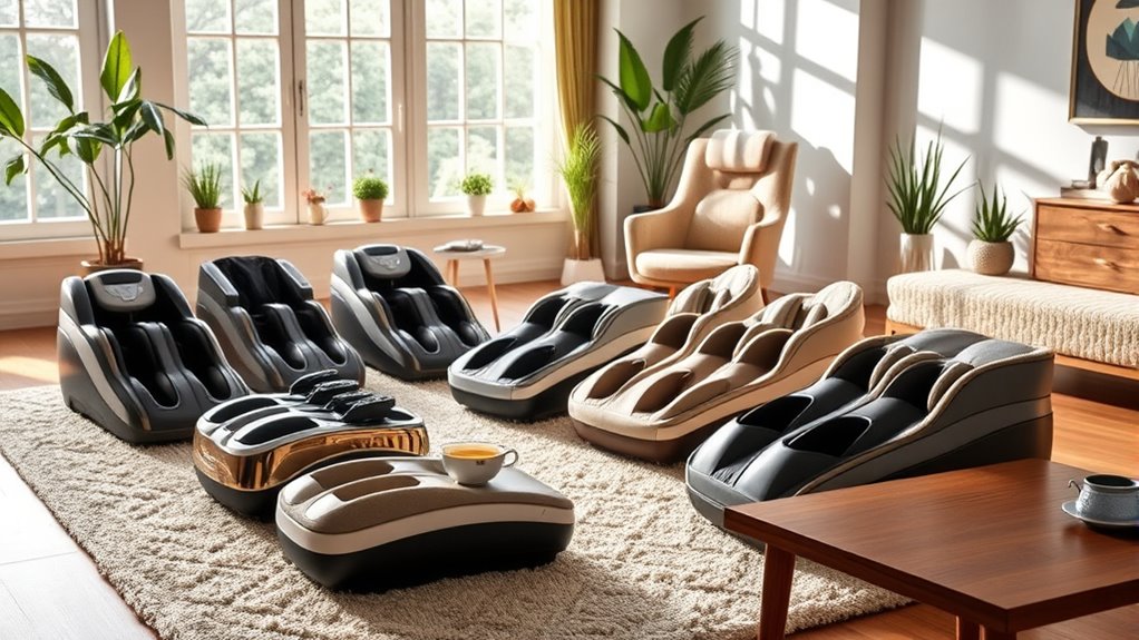 I’ve found that foot massagers specifically designed for neuropathy can truly relieve pain and enhance comfort at home. Models like the MIKO and COMFIER offer deep-kneading, heat, and vibrational features that cater to sensitive feet. Each device varies in intensity, technology, and portability, so you can choose what fits your needs best. If you’re curious about which massagers might work best for your situation, there’s more to explore here.