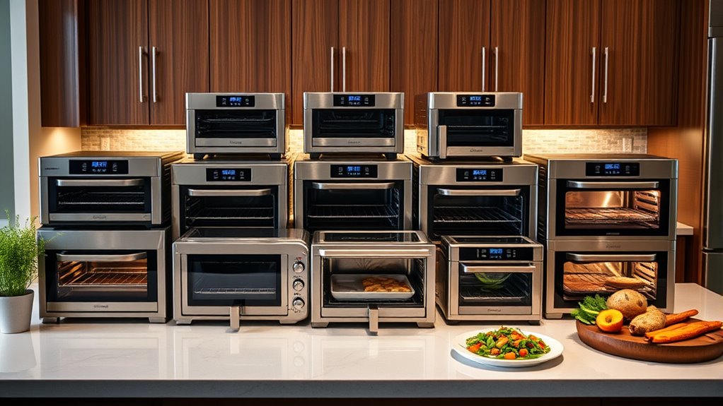 If you’re looking to elevate your cooking game in 2025, I’ve found the 15 best French door air fryer toaster oven combos that can really transform your meals. These combos boast multifunctionality, advanced heating technologies, and spacious designs perfect for families. They’re great for everything from air frying to roasting. Trust me, you’ll want to check out which models made the list to find the perfect fit for your kitchen and cooking style.