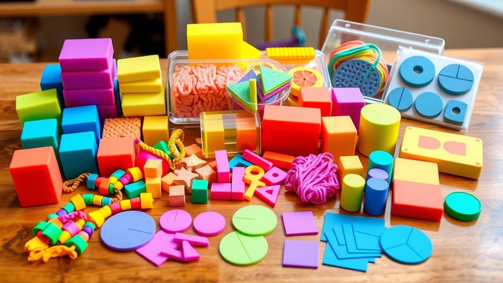 Choosing math manipulative kits that match a child’s developmental stage is essential for effective learning. For preschoolers aged 3-5, look for kits with large, soft, tactile objects like foam counters and chunky blocks. These materials support fine motor skills and early number recognition while ensuring safety with rounded edges and non-toxic materials. For elementary students in grades K-5, select kits with smaller, more precise tools such as fraction circles, base ten blocks, and linking cubes, which align with their growing cognitive abilities. Properly matched materials prevent children from feeling overwhelmed or under-challenged, fostering confidence and sustained engagement. Ensuring the tools are safe, durable, and age-appropriate helps create a positive, effective learning environment that nurtures a love for math.