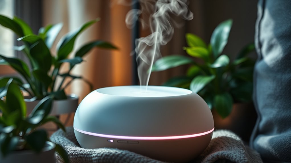 If you’re looking to elevate your home’s atmosphere, I’ve found 14 top oil-diffuser humidifier combos that seamlessly blend aromatherapy, humidification, and mood lighting. These devices come with features like remote control, multiple LED colors, large capacities, and smart home compatibility, making them perfect for bedrooms, living rooms, or offices. They enhance air quality while creating a calming environment. Keep exploring to discover all the details and find the perfect fit for your space.