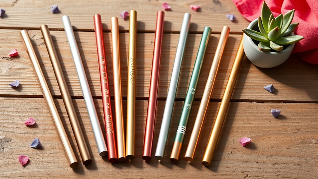 If you’re looking for the best reusable metal straws that blend style and sustainability, I’ve found some great options. From sleek stainless steel designs with silicone tips to portable sets with cleaning brushes and travel cases, these options are durable, eco-friendly, and perfect for everyday use. Whether you prefer simple straight or bent styles, there’s something to fit your vibe. Keep going to discover the top picks that combine function, fashion, and eco-consciousness.