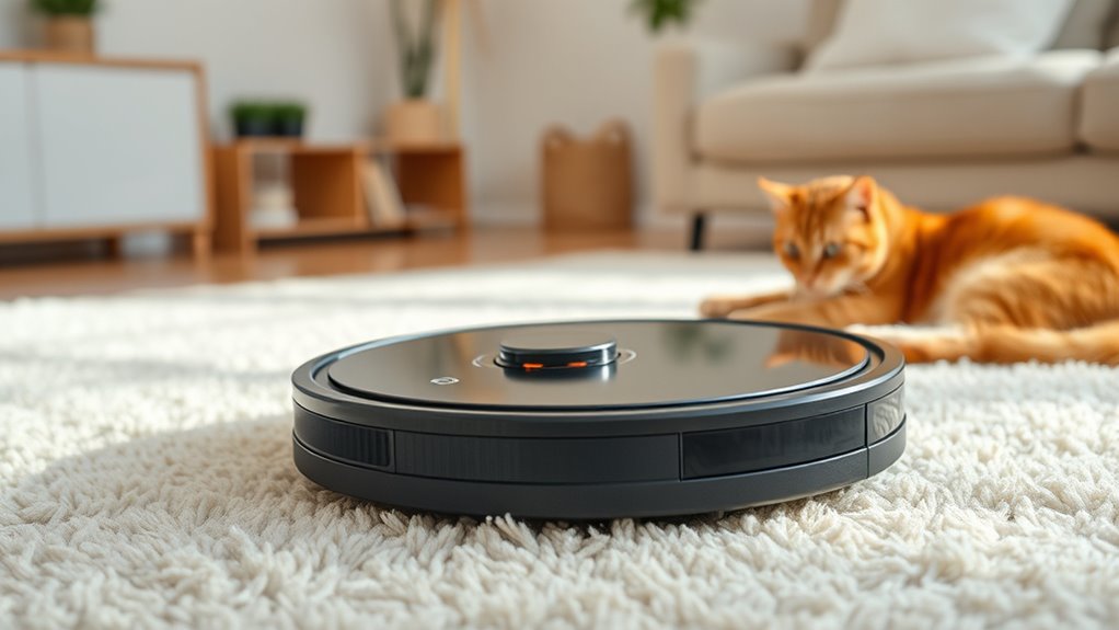Yes, robot vacuums are generally safe for pets during operation. I make certain to choose models with sensors that detect animals and avoid bumping into them. I also keep pets away from the vacuum’s path when it’s running, especially if they’re skittish. Most vacuums are designed with safety features, but it’s always smart to supervise the first few runs to ensure your furry friends stay comfortable and safe.