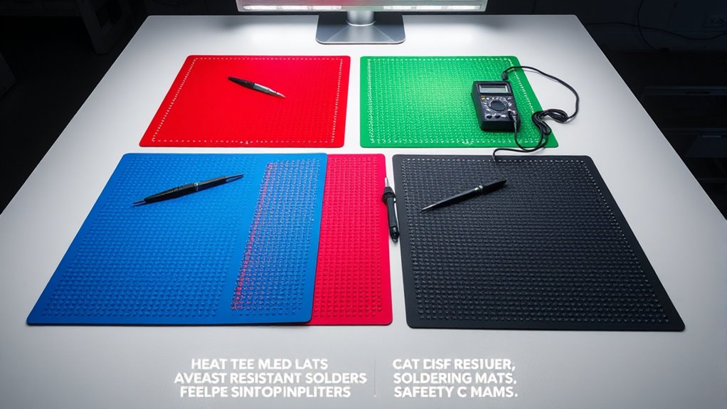 Choosing the right soldering mat is like finding a trusted sidekick—it keeps your workspace safe, organized, and ready for any repair adventure. With options that offer heat resistance, magnetic features, and handy measurement tools, you’ll be well-equipped to tackle projects with confidence. Remember, investing in a quality mat isn’t just about protection; it’s about turning your workbench into a fortress of safety and precision, making every soldering session smoother than ever.